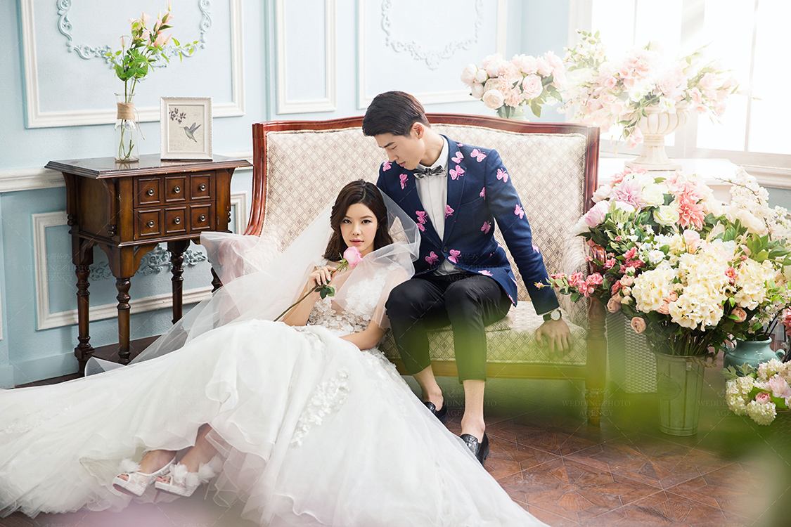 很多新娘都会怕自己没有腰线,不要担心,你可以一手叉腰一手遮住小肚腩,再配上可爱的表情,简直是绝美的姿势哦。有气质又不缺乏幽默感,还可以把自己的线条凸显出来,让自己在立体的视觉效果中更显瘦。
