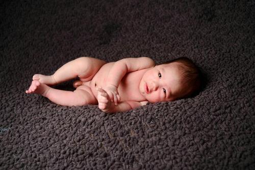 因为想突出满月宝宝皮肤的柔软和质感,所以背景我选择了手感很柔软的深棕色毯子,便于压暗四周环境,突出宝宝。