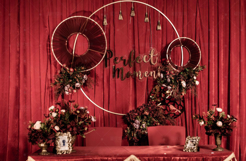 2、准帮花堂。找来一张八仙桌,还有一张毛主席像要挂在墙上,桌子上放一只斗(早时称粮食用的),里面装满小麦,插上一杆秤(带铜盘的称),一棵并着的大葱、艾蒿、柏枝用红纸或红布捆着插进斗里。意思是小两口的日子称心如意、五谷丰登、并结莲理之意。