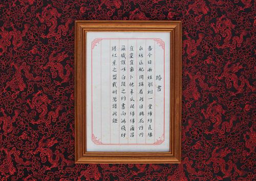 第三步,一定要记得要用正式书写,用毛笔写竖行字,通篇从右往左书写(影视里圣旨格式同),字体要端正,布局也要整齐,不能有错字或者是改写的字。