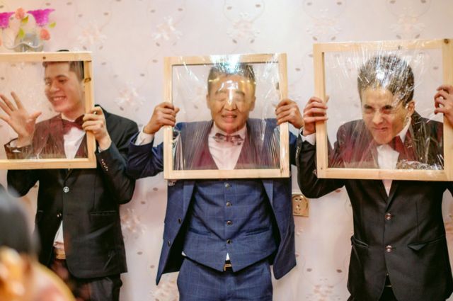 这个游戏特别简单也特别经典,经久不衰。任意一方蒙上眼睛,可以新郎给伴郎涂,也可以伴郎给新郎涂,很多俏皮的摄影师还会让他们涂完了在来个甜蜜的亲吻
