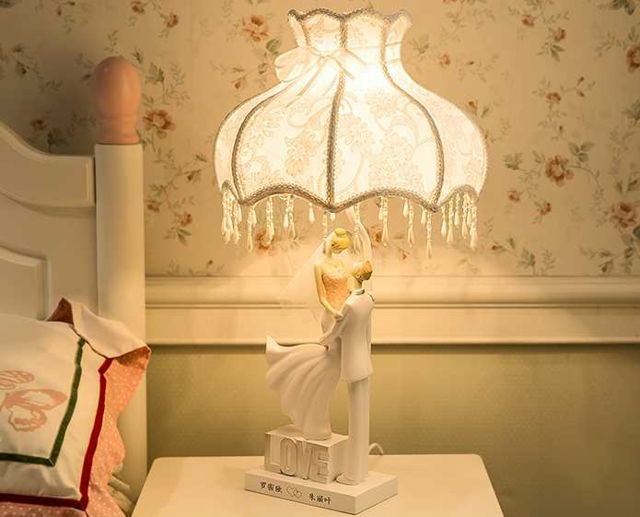 送新人浪漫的婚房台灯是很实用的,这LOVE情侣台灯光线比较融合,蕾丝布艺材质,能够更好地过滤灯光。灯下方的人偶象征着新婚的快乐和幸福,而台灯底座上面还可以刻上新人的名字,更是对新人的美好祝福。