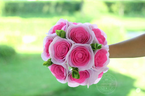 4、根据这种方法,你就可以十分自由地利用皱纹纸和包装纸折纸创作出自己较想要的那种结婚婚礼所需的DIY手捧花。