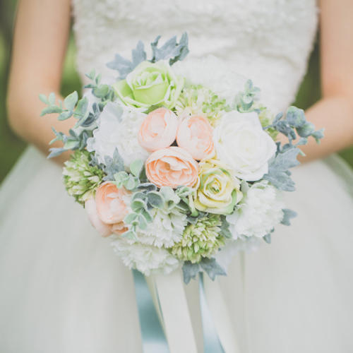 选择喜欢的纸对花束进行包装,并系上漂亮的丝带,一束别致的多肉手捧花就完成了。