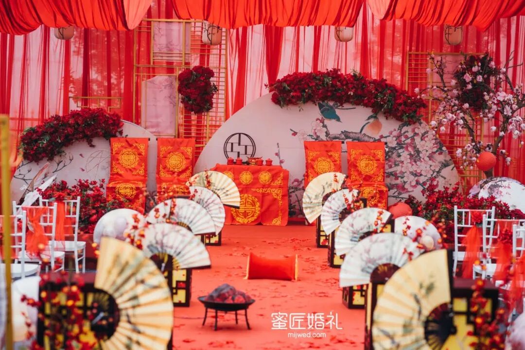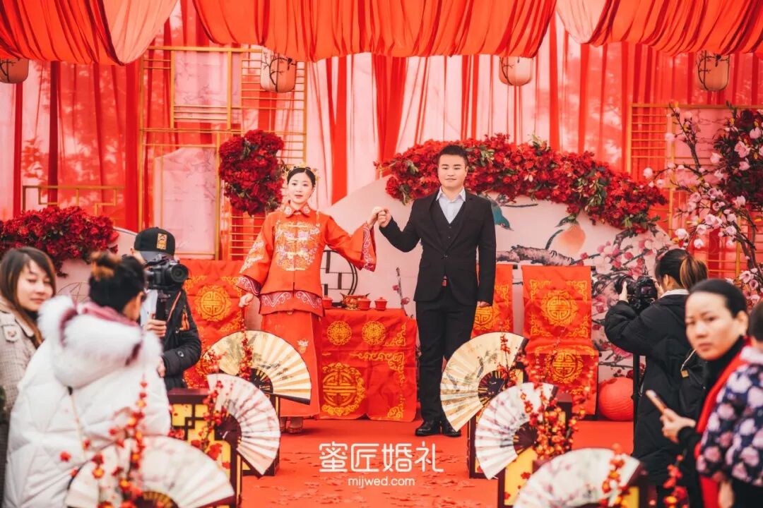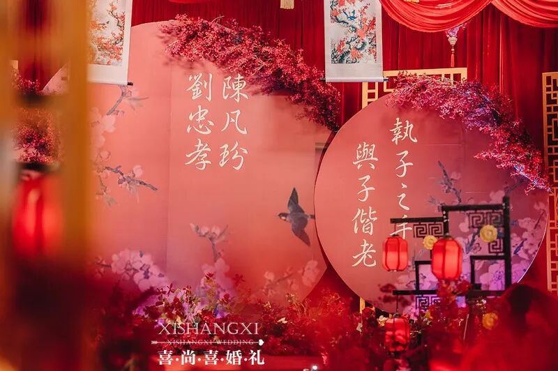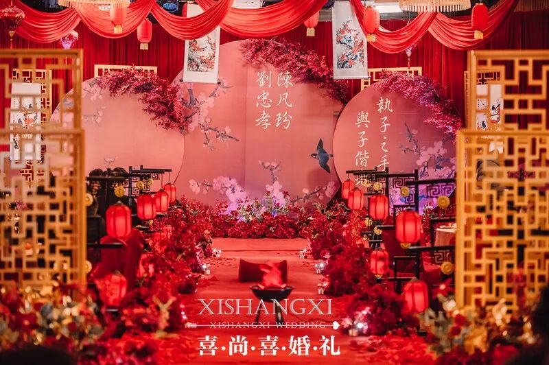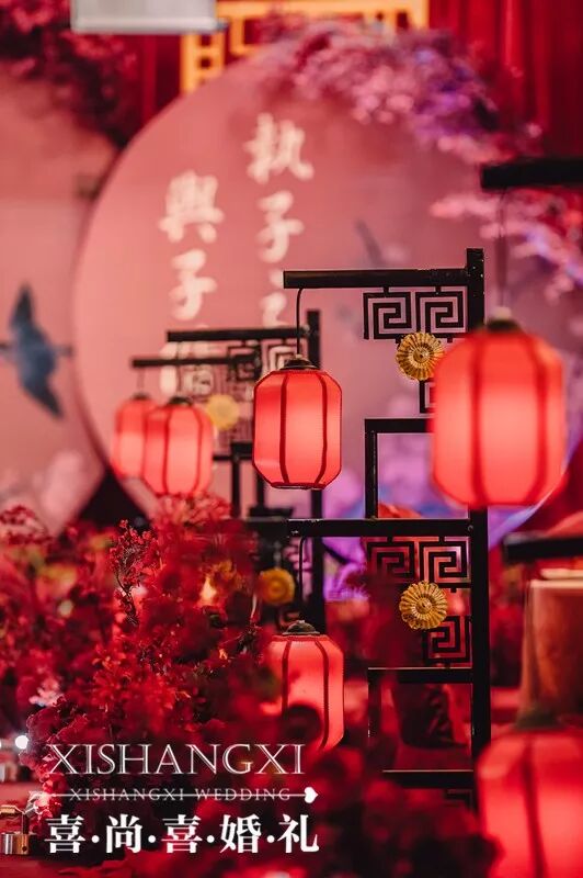 一场新中式婚礼,用传统文化结合新潮的中式风格。红梅灯盏,美画宫灯,燕尔新婚,良缘缔结,你为我雕琢盛世景,我为你妆点桃花妆,此后漫漫余生尽托付。