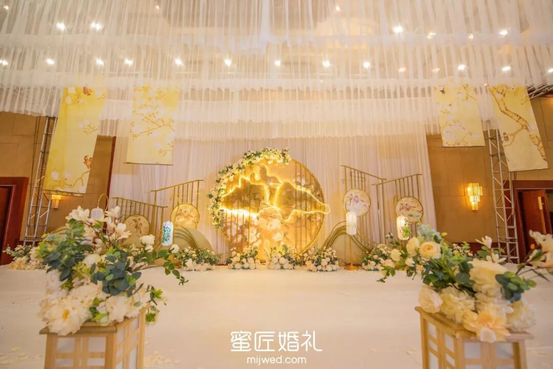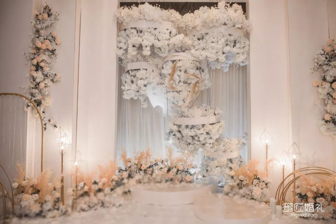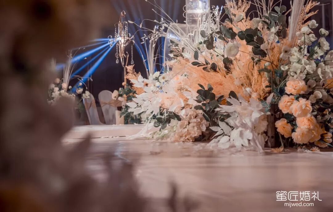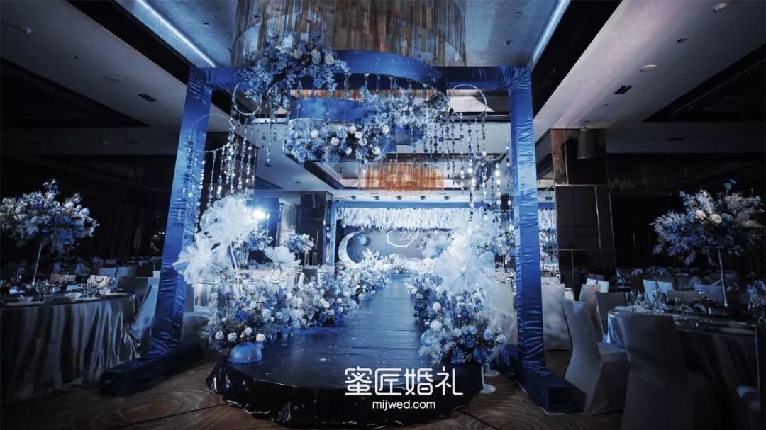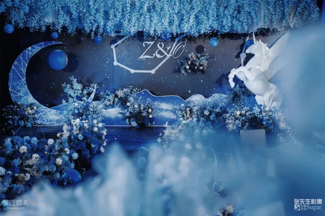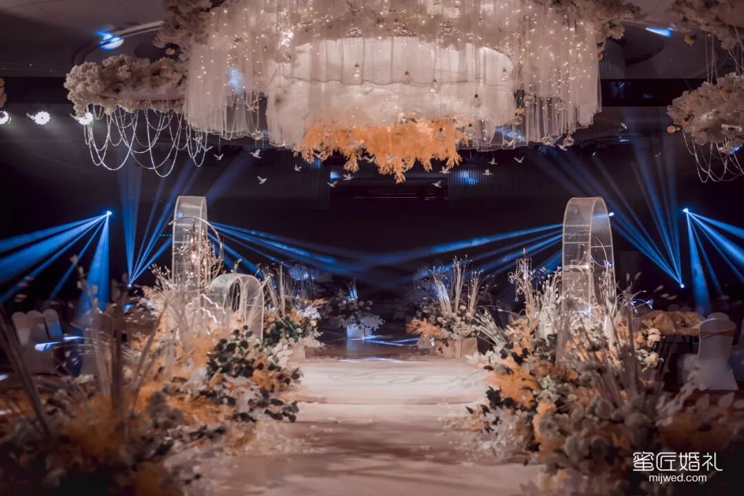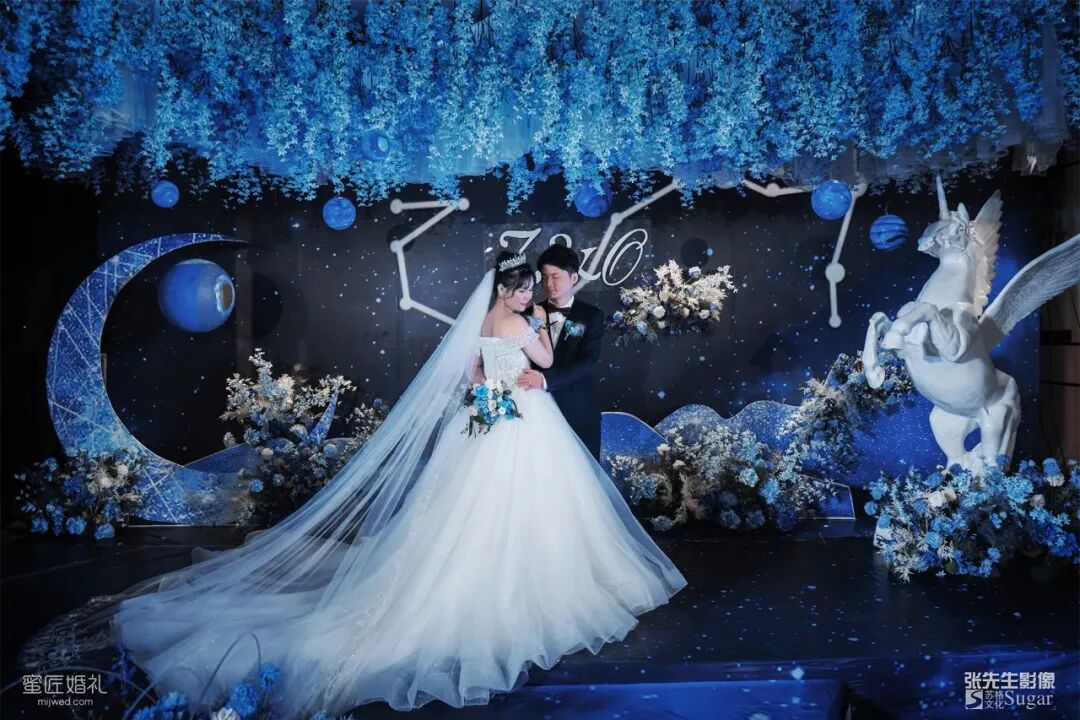 高级感十足的婚礼现场,兼具颜值和性价比,望见远空的星月,如繁星般闪烁动人的你,做我平淡岁月里的星辰,较好的爱情不光经得起花前月下,更是无论日月星辰如何流转,依然不变。