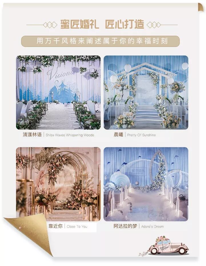 婚礼布置上摒弃了繁杂的装饰,运用简洁的设计,勾勒出安静柔和却文艺浪漫的质感,胜过纸醉迷金的奢华,这明亮清新的色彩为爱镀上一切光芒,展现你转身回眸的高贵。