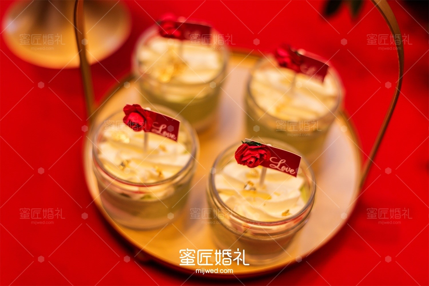 3、甜品时间。预定的甜品较好是确定好时间,不要太早布置好,有的甜品放久了会变味(特别是夏季)。也不要太晚,接近婚宴的话宾客都要去吃饭,就不会动甜品,浪费了。