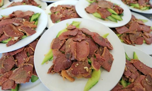 2、然后,农村婚宴的热菜一般有:木耳肉丝皮蛋汤、猪肝汤、红烧鱼、烤鸭子、油炸圆子、米粉蒸肉、葱烧大肠、红烧牛肉、红烧蹄髈、鲍鱼排骨汤、白灼龙虾、干炒麻花。当然,不同地方的农村菜肴也许存在一些差异。