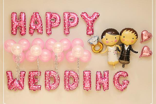 气球在某宝上都可以买的到,而且价格非常合适,选择字母样式的气球,这种气球是现在较流行的气球,布置婚礼现场非常好用,而且看起来也非常漂亮,可以选择新人的名字拼音,组合起来贴在婚房里,有一些五角星这些小装饰贴在字母旁边。