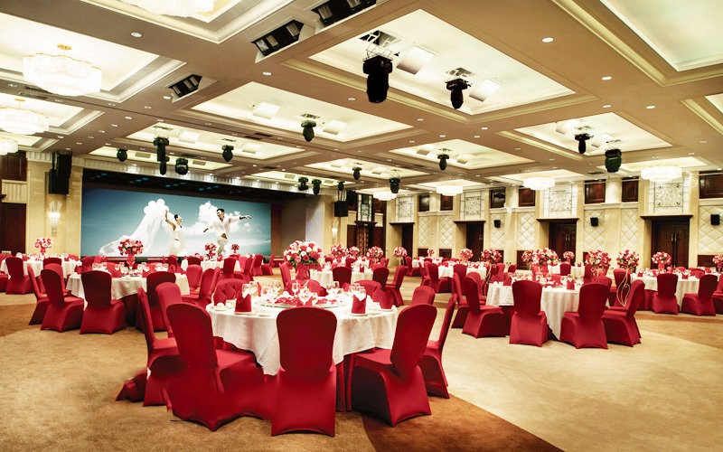 婚宴厅舞台的位置和布置是整场婚宴的重中之重,因为场地形状的不同,舞台的安放位置自然也不同。如果是椭圆形场地,我们就可以把舞台的位置设定在杂圆弧的位置;如果是三角形的场地,我们就可以把舞台设定在它钝角的位置,这样整个场地就会看起来特别的开阔。