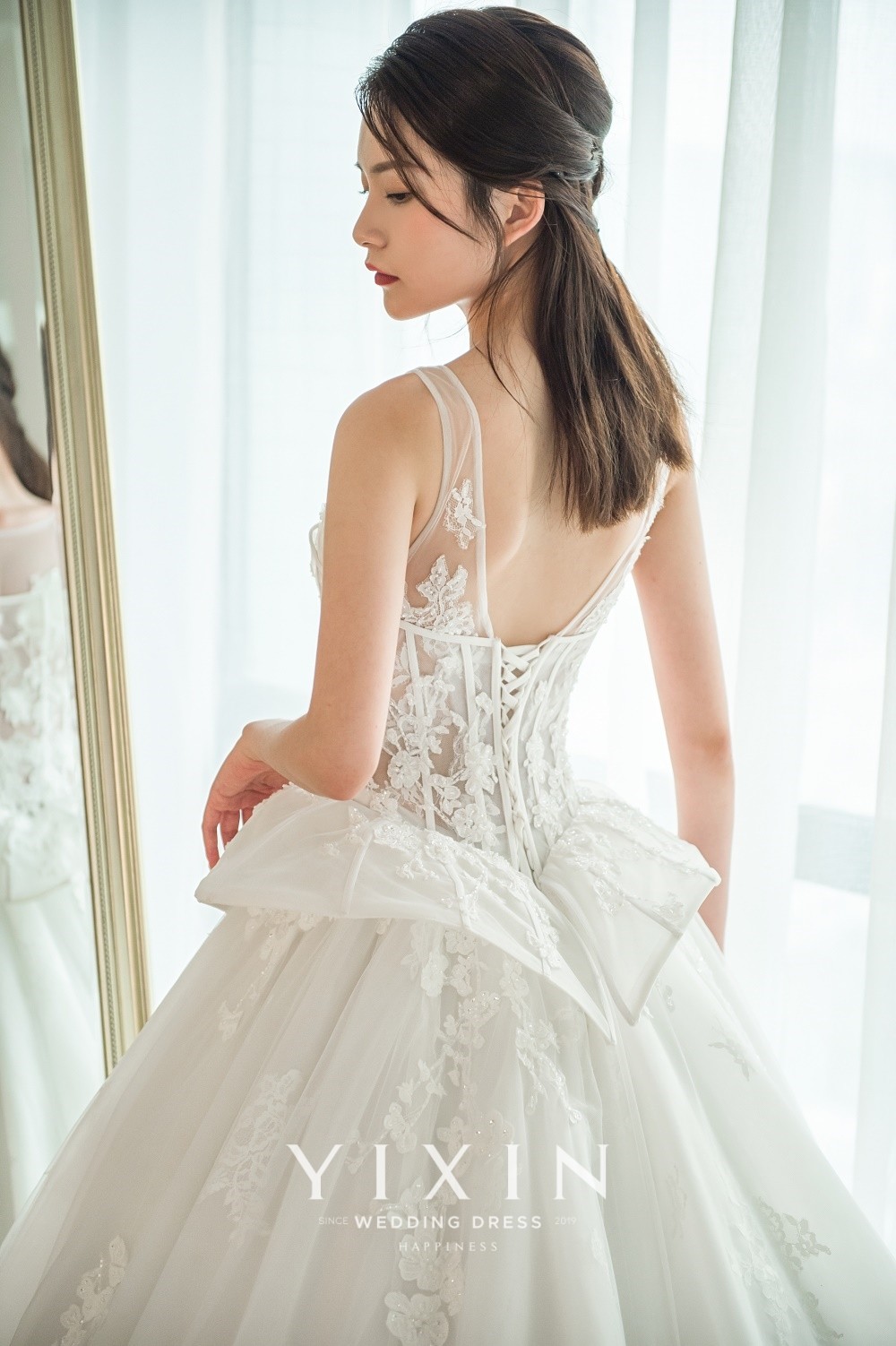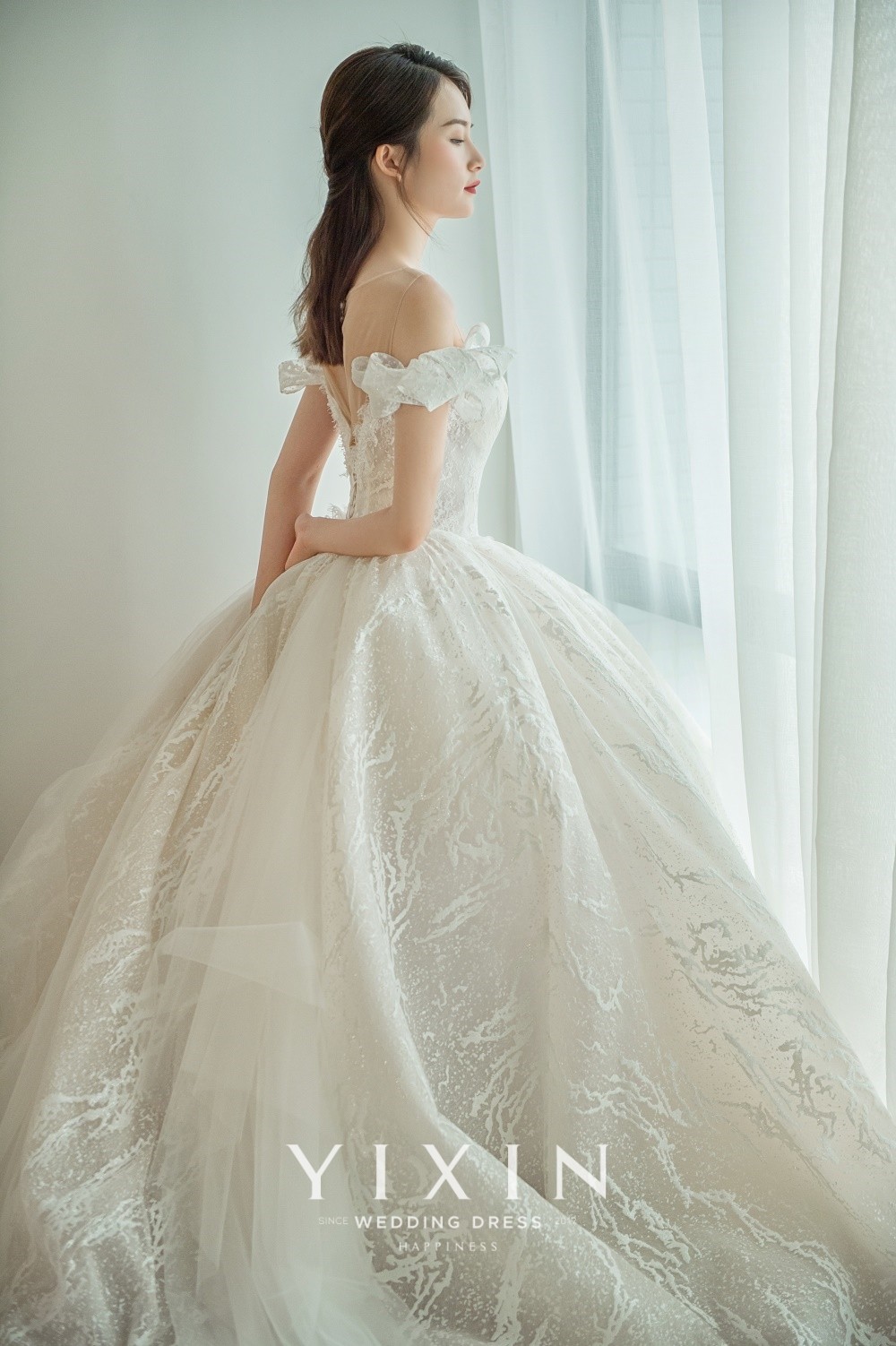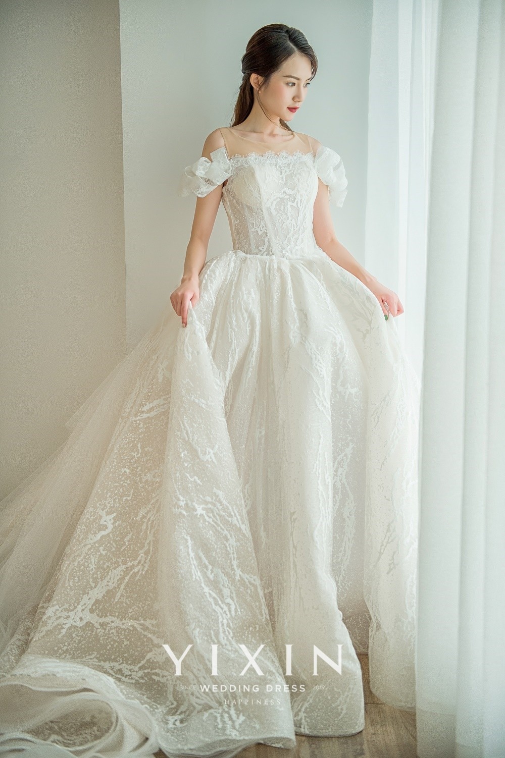 对于喜欢有拖尾婚纱的新娘来说,可以选择一些前短后长的婚纱,这样就能够把退露出来,也不会让人觉得婚纱压人,短而高腰的婚纱会让你更活力的同时还能展现出一种娇小的美。