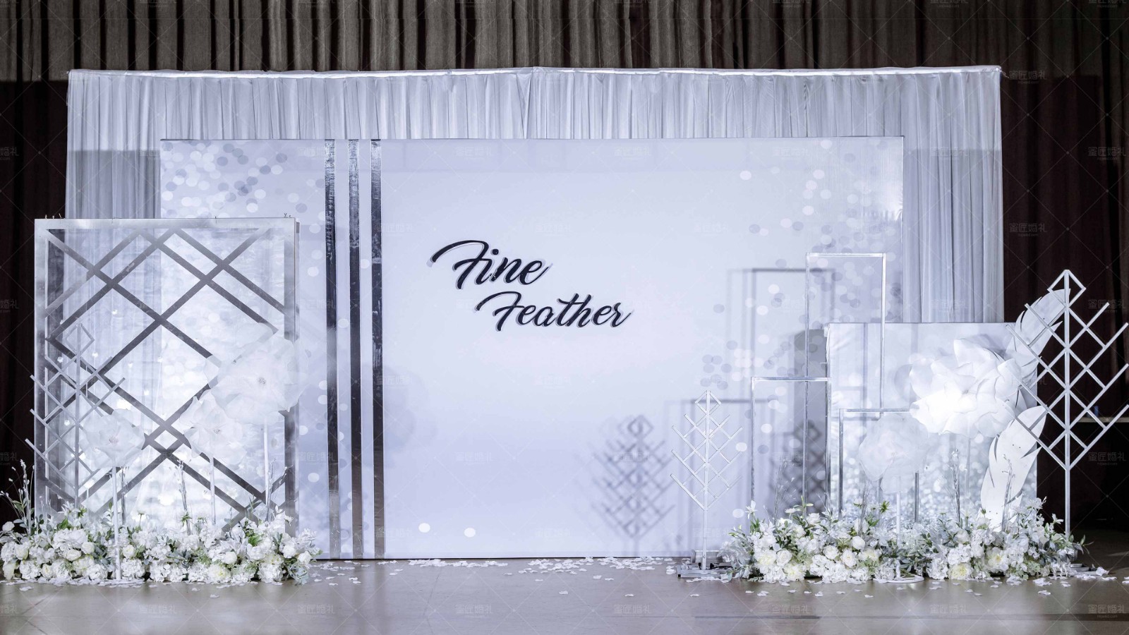 婚礼场地是非常重要的,我们可以从色彩搭配、鲜花、背景、婚礼舞台、灯光柱等方面来表现。