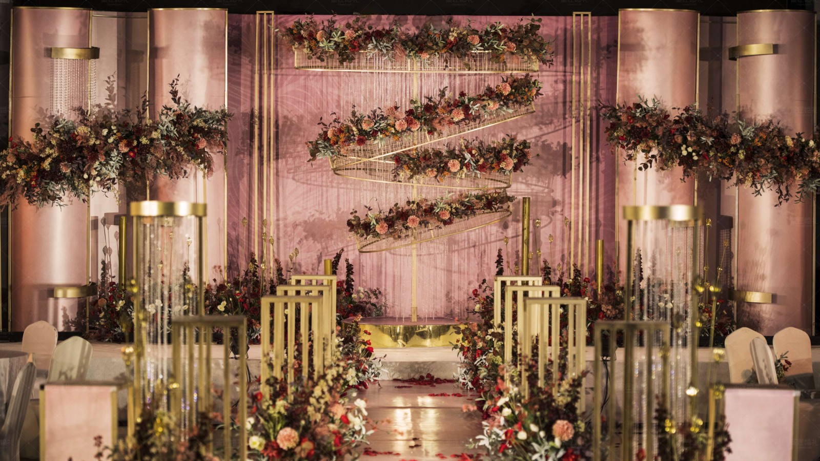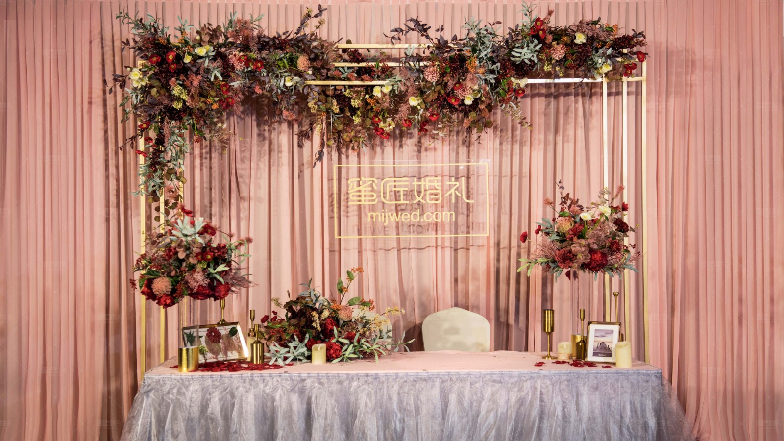 整场婚礼以深豆沙色与浆果红的温柔撞色中再以金属质地配色点缀其中,张弛之中打造一个柔和且独立的婚礼空间。别致质感而又不失浪漫温情,拉开了如电影唯美诗意的篇章,彰显独特的高级感。