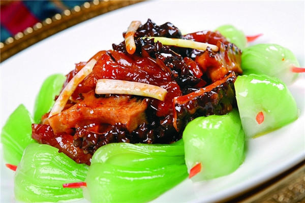 春风泛舟金莲璧——鲍鱼烩乌参 水涨船头鸳鸯立——树子蒸石斑