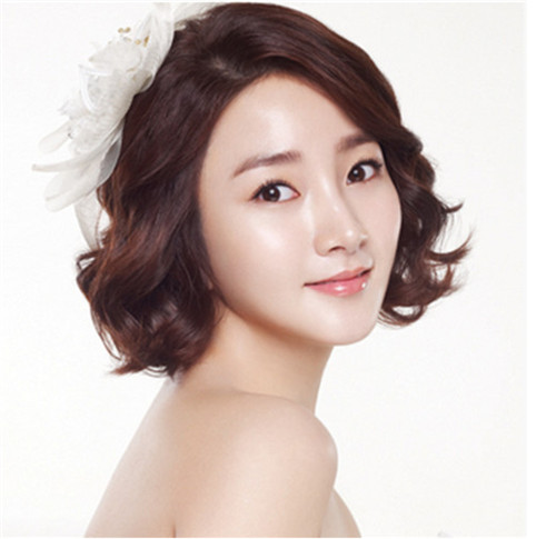 图中这款造型非常简单,将头发染成棕黄色,在将头发盘于脑后,然后点缀上代表高雅纯洁的珍珠,这样既低调不张扬却又气度不凡,因此,深受新人朋友的青睐和喜欢。