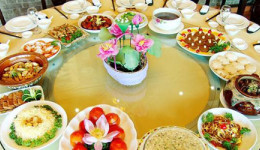 热菜:香螺等贝壳拼盘,虾狗弹,基围虾,笋干老鸭煲,青蟹,猪肚,红烧肉(或猪蹄),海参汤(或沙蒜汤),鲍鱼,茶树菇,生炒甲鱼,西芹夏果,鲳鱼(或东星斑鱼),雪莲子汤(或雪蛤汤),剪豆腊肉,炒绿豆面(重配料,比如虾干,鳗鱼干,鱼面等等)