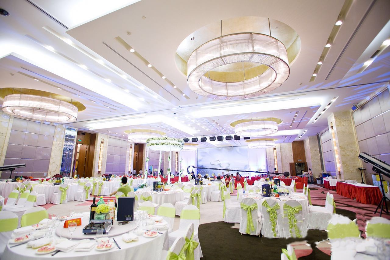 推荐理由:500平方米的宴会厅前厅面朝一线无遮挡的前海湾海景,落地玻璃窗及露天平台浪漫十足,可容纳112桌的大宴会厅内,华丽天花板上装设的LED灯可随新人喜好变幻各种婚礼主题色,此外,315平方米的小宴会厅位于酒店一层,落地窗户带入自然采光。