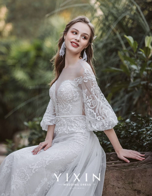 这一点也要考虑进去,我们举个例子说明吧。准新娘的皮肤属于发暗发黄的类型,那么这一种肤色及时上新娘妆,看起来也没有那般白皙透亮,在选择婚纱的时候,如果你觉得大红色是你的较爱,我只能说你可能会驾驭不了这种颜色。所以在选择婚纱的时候一定要把自己肤色考虑进去。