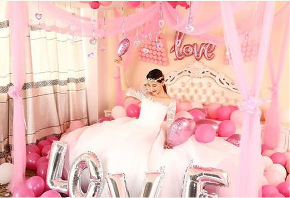 在婚房的布置上,新人可以在沙发、床上、天花板等布置上选择一些粉红色的心形气球布置,这样不仅可以更好的帮助你布置婚房,还能增加婚房的情调。