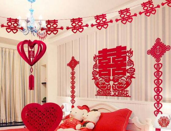 2. 要突出“喜庆”氛围 :结婚是人生中较重要的一件事情之一,一些追求时尚的男女都会在材质上有所要求,那么在这里我们要提醒大家:如果在装修中大量地运用不锈钢、玻璃材质会让居室 有些冰冷,如果考虑婚后会有小宝宝,大量的这些材质也会是不安全的因素,所以建议多考虑一些布艺、壁纸等相对柔的材质。