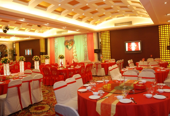 无柱子,可容纳300人的大型宴会厅及温馨的可容纳200人的多功能厅、户外草坪。
