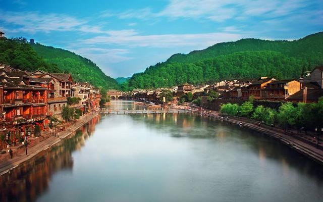 凤凰古城有着独特的美,白天的时候它像一个守护古城的老人,安静祥和。晚上它像一个闭月羞花的美丽女子,光彩照人。晚上江边吊脚楼的灯笼亮起来了,酒吧也开始热闹了,游客们开心的嬉笑声响起来了,这仿佛是一出浪漫的戏剧。