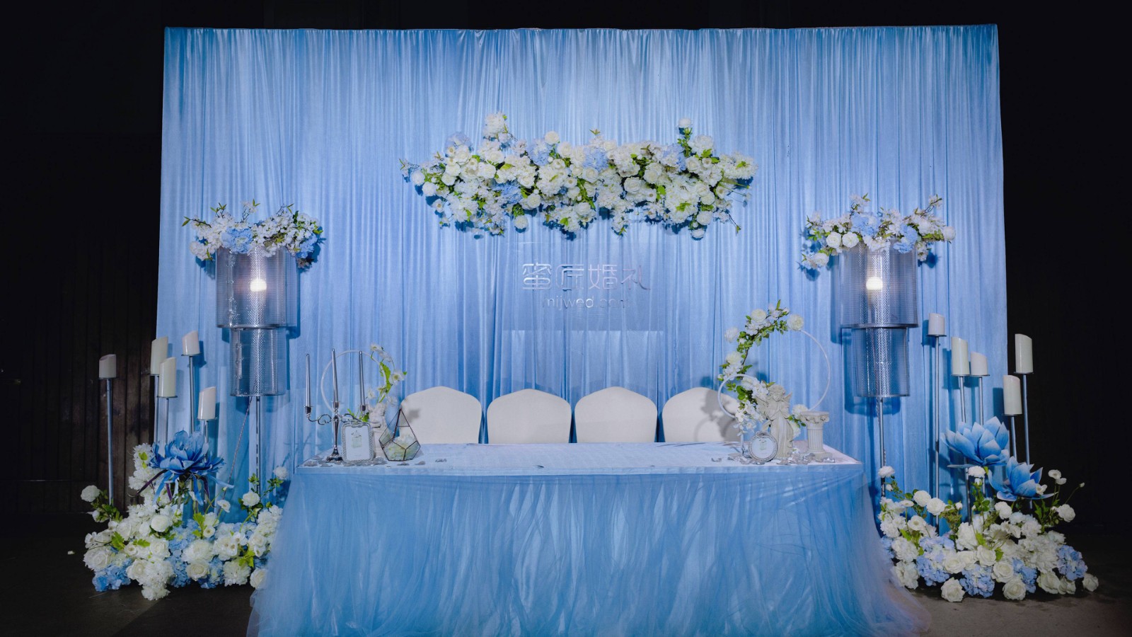 源于周杰伦与昆凌的盛世婚礼——Selby Abbey塞尔比教堂。用冰丝布幔打底,高价购入建筑类专业阳光板,使得教堂更为通透,辅以高仿真花艺与垂挂璀璨的珠片装饰,在洒满时光印记的教堂许下爱的箴言,神圣隆重,终身难忘。