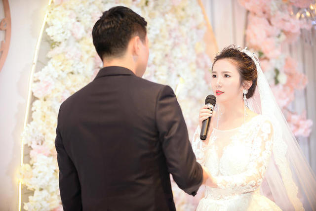 3.在交代和相关的事物之后,新郎的父母会亲手戴上有新郎标志的胸花,母亲此举寓意着真诚母爱的祝福,然后由父亲将新娘手中的手捧花传递给新郎,这预示着代代接力,长盛不衰。