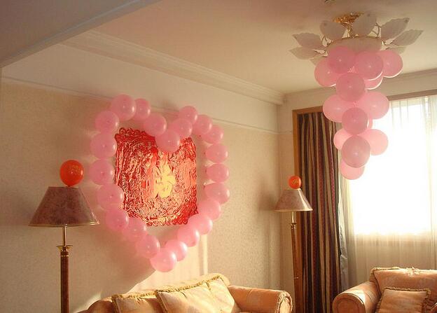 在婚房的布置上,新人可以在沙发、床上、天花板等布置上选择一些粉红色的心形气球布置,这样不仅可以更好的帮助你布置婚房,还能增加婚房的情调。