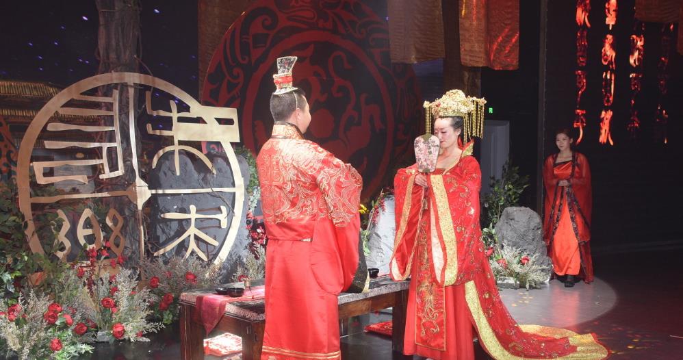 新娘来到新郎家,要点上花烛,然后就开始举行结婚的仪式,新郎新娘和主婚人都坐下来,证婚人会宣读证书,新人要拜天地、拜父母、夫妻对拜最后还要和交杯酒,将新人送入了洞房,宾客人才可以开始吃饭。