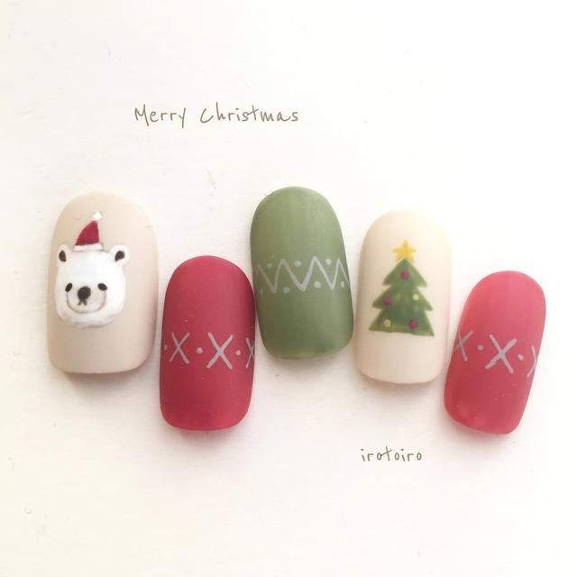 说到圣诞节美甲,怎么能没有圣诞老人和麋鹿呢。这款也是比较经典的圣诞美甲,灰粽色的圣诞树有了水钻和小金珠的点缀也变得既低调又华丽,非常好看。整体的配色也非常舒服,浓浓的圣诞节味道。