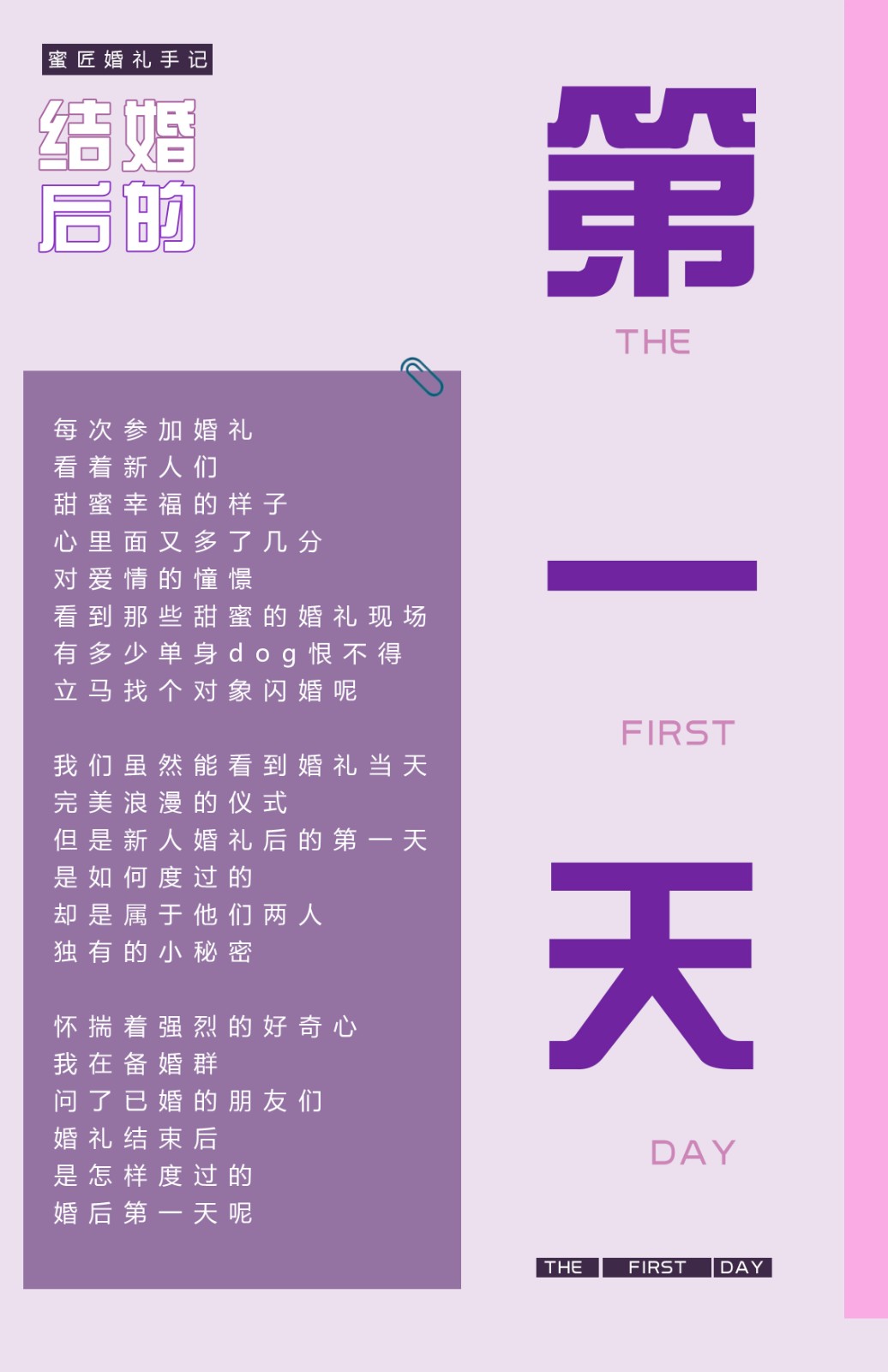 其实婚前和婚后的生活状态,并不会一天之内有很大的转变,但新婚夫妇们,在婚后的这一天多一点仪式感,不仅是告诉自己,现在有了新的身份,也是告诉对方,属于你们的新生活正式开启了。