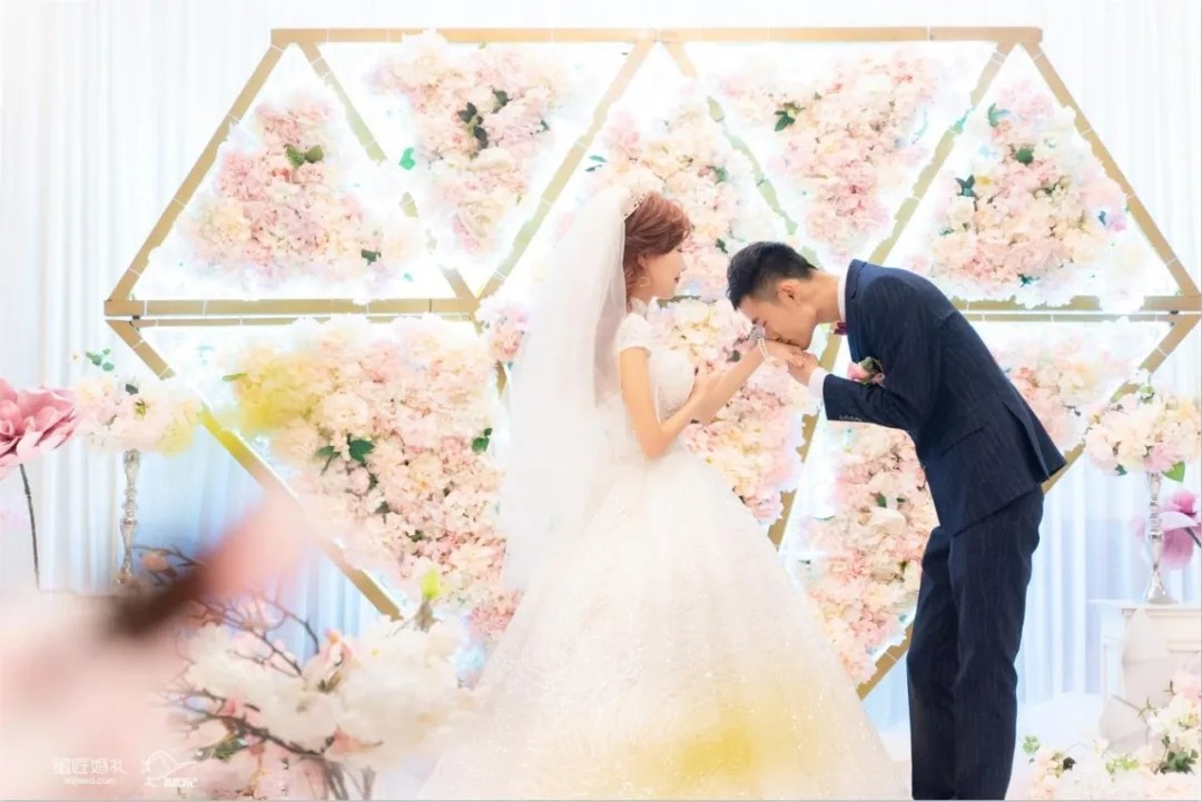 婚礼现场的布置总是少不了鲜花的,鲜花一方面点缀了婚礼现场,另一方面见证着新人忠贞不渝的爱情。