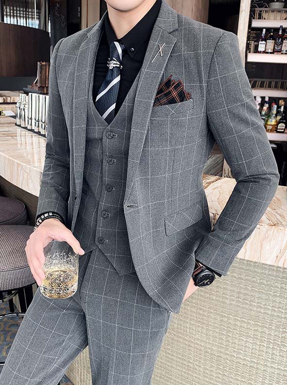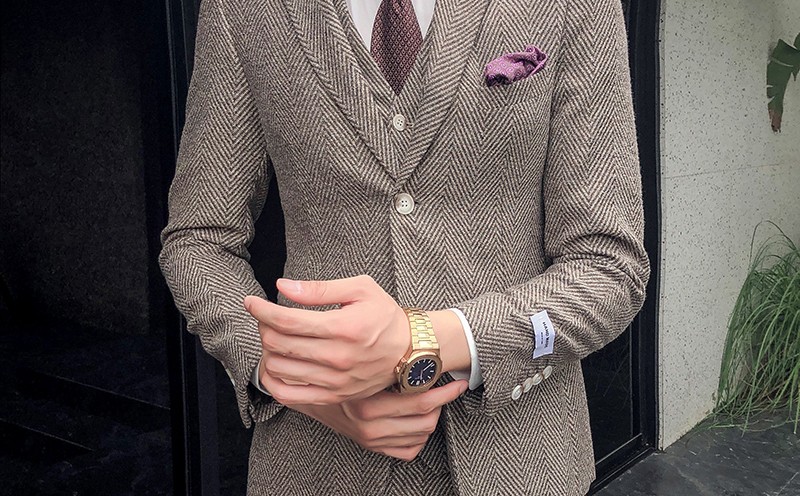 男士们可以选稍微休闲一点的西装,搭配一些简单的饰品,除了方巾,还可以戴戴手表或者眼镜,增加整体搭配的休闲感。