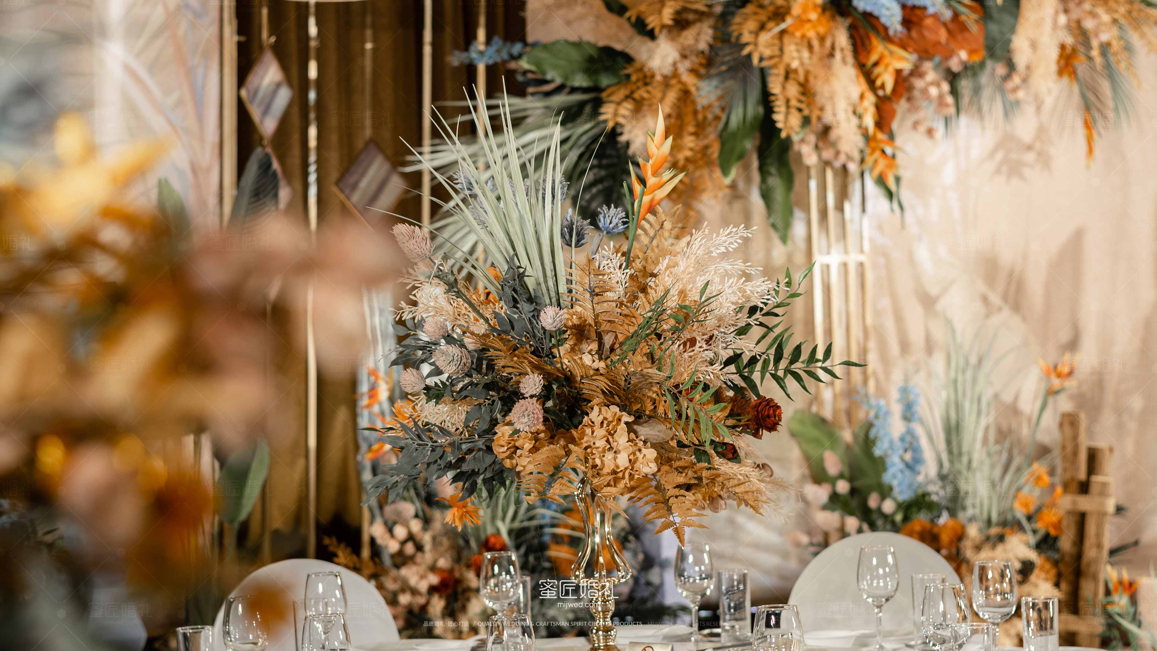 在这条走向幸福的花路上,我只愿与你携手简约高级暖色调花艺主题路引| 主题色系花艺双生繁盛花艺| 几何线条烤漆铁艺精致主题宴会桌。
