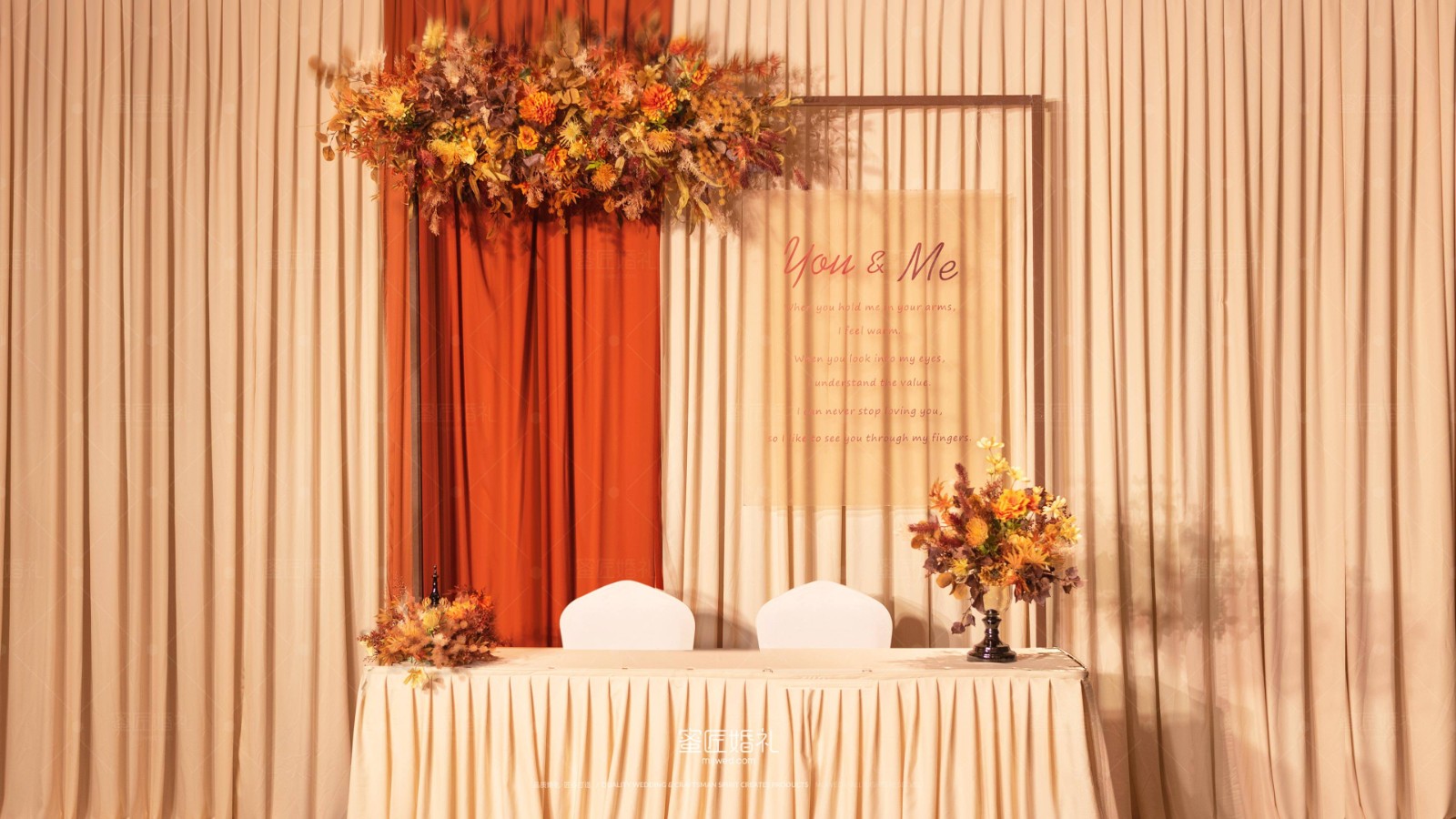灵感源自秋日里的温暖回忆,漫步于满地红枫里,秋风吹着枫叶飒飒作响,我看着漫天的霞光,脑海里灵感渐渐浮现,希望绘出一场如秋意般温柔的婚礼,将所有的美好定格于此。