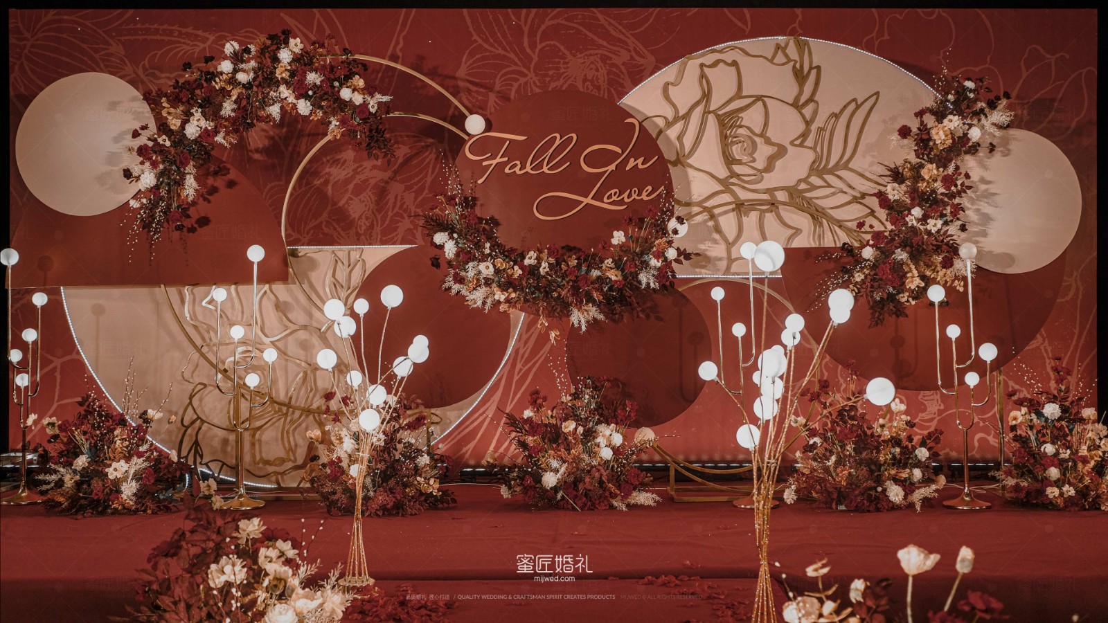 复古砖红色调配色,交汇的圆形加轨道曲线为主题打造,造型灵感寓意两个人的爱情关系像是一个圆 ,各自有各自的轨迹,却也无时无刻不牵挂着彼此,相互关联又各自圆满。