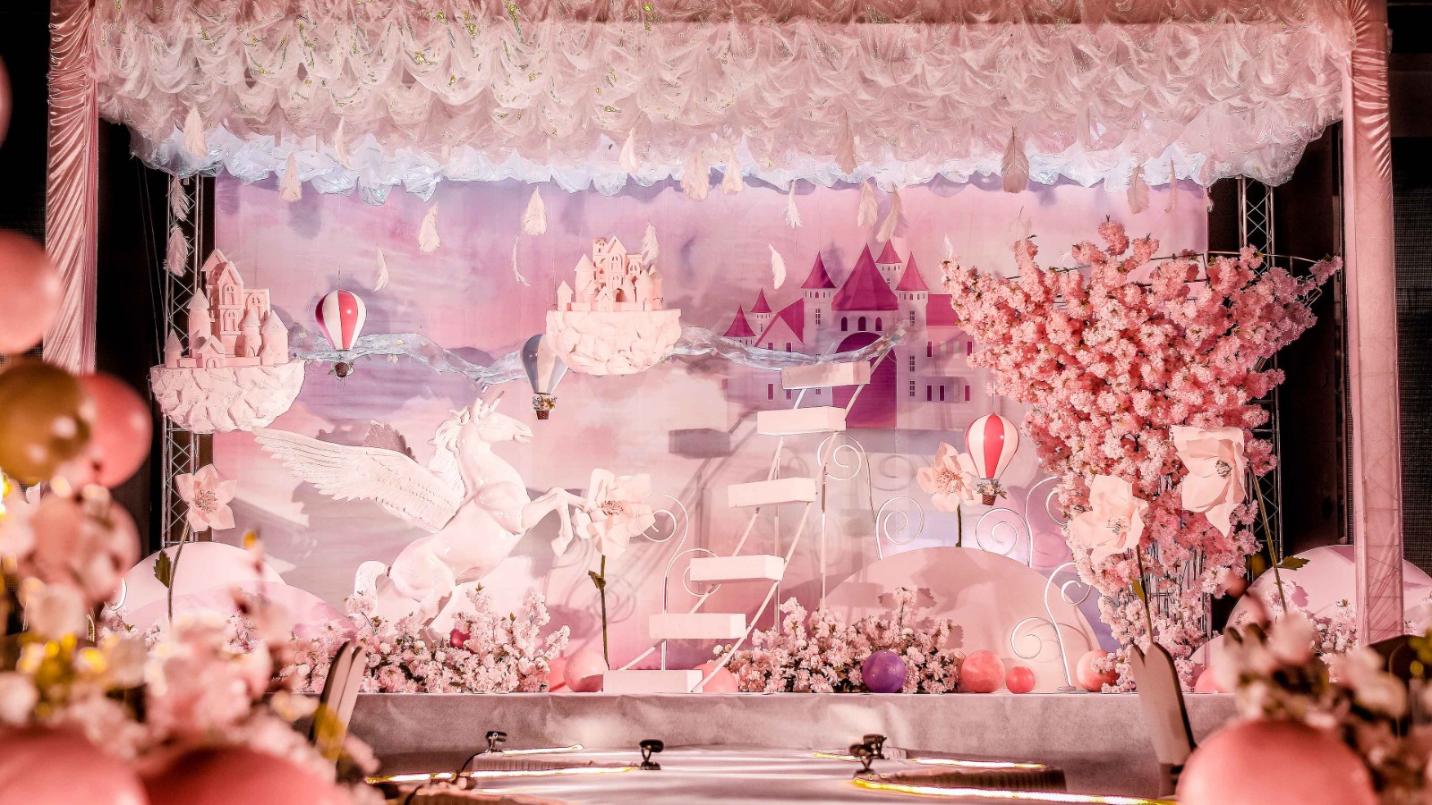 舞台是婚礼现场上目光最为集中的地方,舞台背景同样是场景布置的重点。一般来说,布置舞台背景需要的花费不会特别高,大致在1000——2000。当然,如果加上舞美设备和少量鲜花,价格就会比较高了,大致在3000——4000左右。