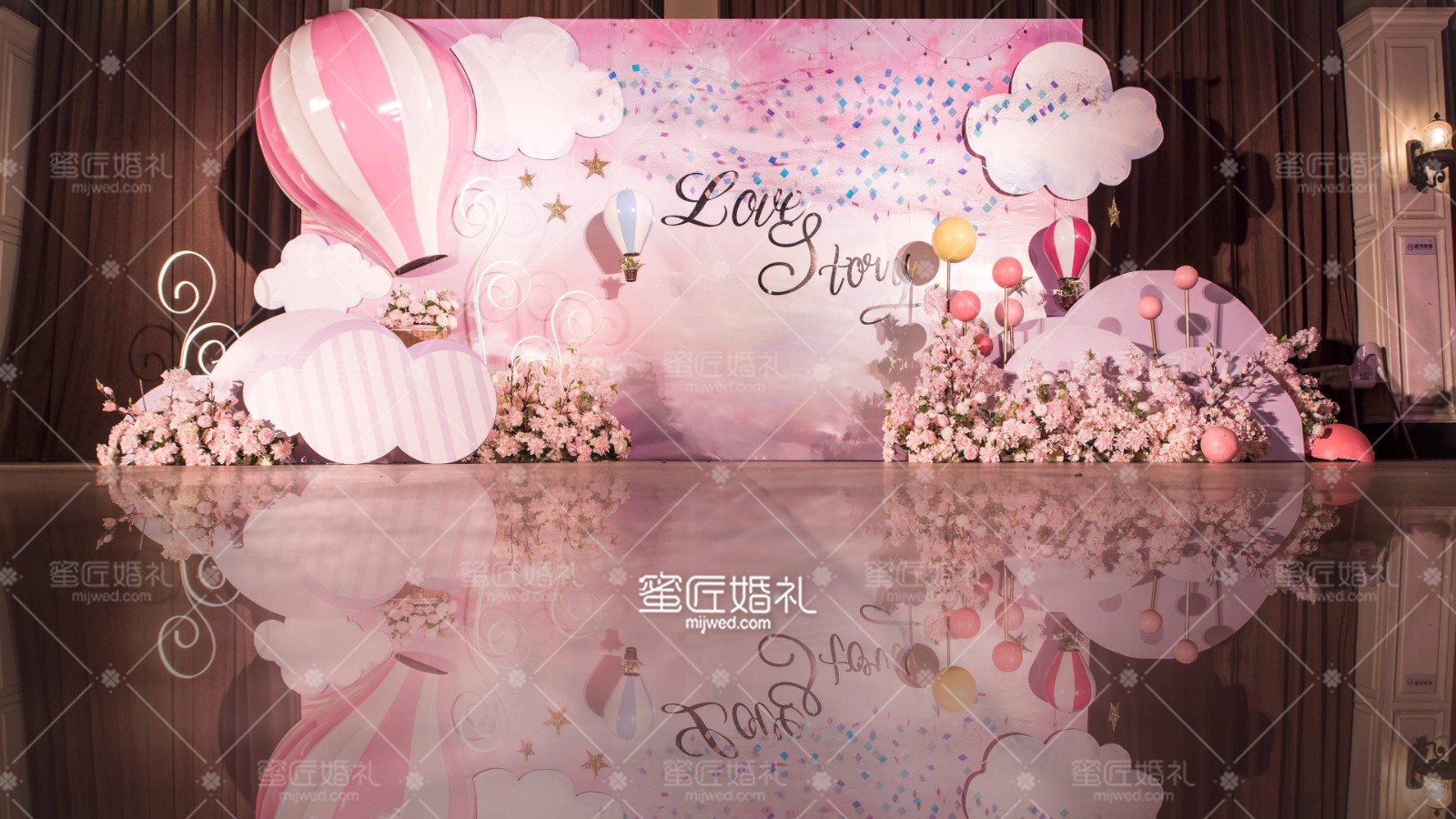 独特的中心舞台设计聚焦动心时刻,奢华线帘云纱吊顶间点缀精致热气球,将甜美梦幻推至顶峰。