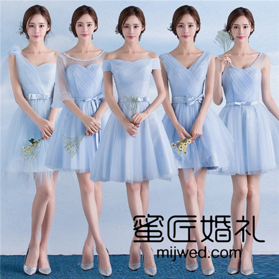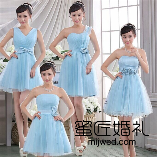 如果你实在不知道伴娘服颜色怎么选,那就选择蓝色吧,蓝色代表着沉稳,也能凸显女性独特的气质,蓝色也是一个很万能搭配的颜色。如果礼服是丝绸的设计,则会显得很飘逸,很唯美。以这样一身的装扮出现在婚礼上,想让人将实现从你身上移开也很难,当然较重要的原则还是不能抢了新娘子的风头。