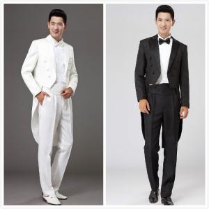 除了上面那些,还可以考虑一下燕尾服,燕尾服是西方男士对于特定隆重的场合适合穿礼服。它主要以黑色为主,然后在设计上是根据西方马车夫的服饰为模板,其前身西装造型;后身呈燕尾形开衩。这款礼服充分的凸显出严肃、深沉和神圣气质。