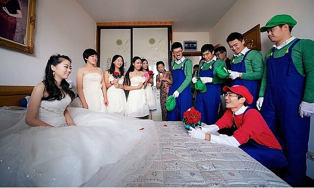 16、新郎要大喊3声:“嫦娥姐姐,猪八戒来迎亲咯!”