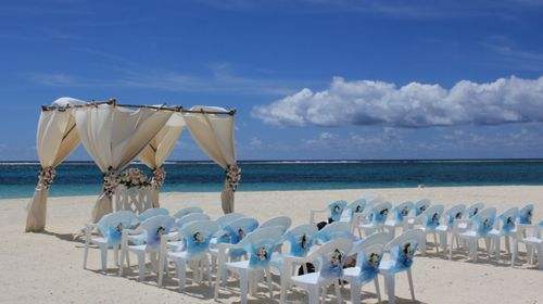 海滨婚礼贝壳是少不了的,这个时分洋溢海洋风情的贝壳能够作为婚礼的妆点,潇洒的蓝色飘带让新人和来宾摇身一变在湛蓝大海中畅舞、是不是很特别呢。一起也能够给来宾预备一些小礼物,蓝黄糖果盒就是不错的,明亮的蓝、黄色组合为婚礼定下明亮、高兴的基调,婚礼上我们都显露夸姣的笑脸,像孩子相同心爱,这场温馨的主题婚礼便会愈加的有意义。