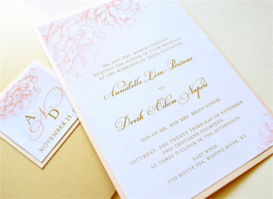 在喜帖的风格还有色彩的选择上,也是需要配合婚礼主题,但是要注意一点的是,无论婚礼是使用中式或者是西式,喜帖都需要给人带来一种喜庆的气氛。在设计上尽可能的迎合婚礼现场的风格,但是不要太过于花俏,以免造成受邀来宾的误解。