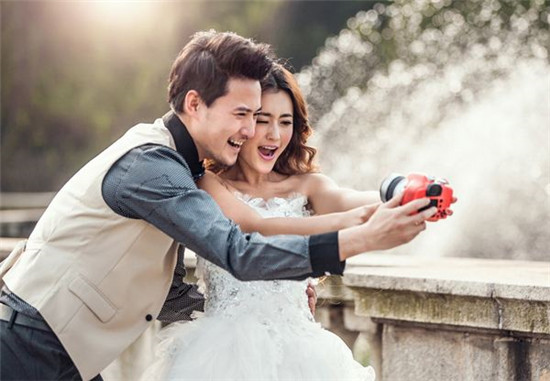 虽然新郎的西服肯定不如新娘的婚纱夺人眼球,但是在搭配的细节上也不能马虎,一般来说,西装、衬衣和领带一个都不能少,纯色的西服较好搭配纯色的衬衫和领带,条纹衬衫要搭配纯色的领带;在领带的颜色方面,要么和西服一致,要么和衬衫一致,图案则较好不要相同类型。比如:粉色的衬衫较好搭配粉色系的西服,婚纱摄影厦门而领带则要选择蓝色、咖啡色等深色系。
