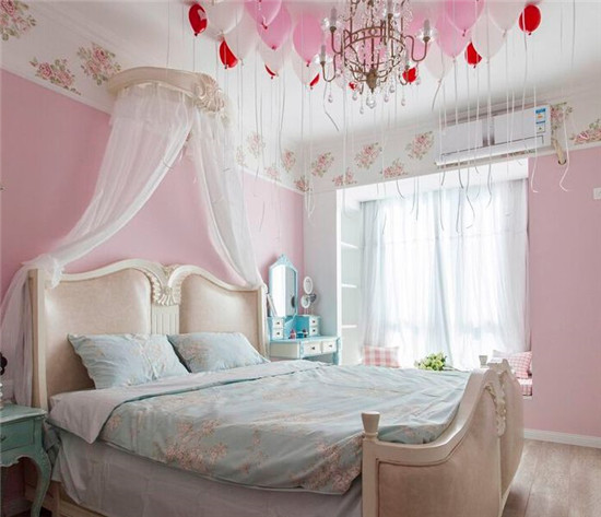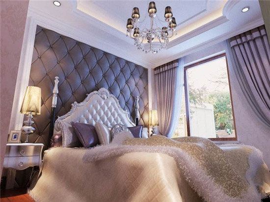 卧室也就是洞房 是新婚家庭的中心,也是新婚夫妇高度重视的地方。它的装饰应体现出喜庆、高雅、浪漫的气息,在色彩的运用上应选用具有浪漫温馨气质的色彩。室内光照应适中,不宜过亮。另外窗纱的设置也很重要,朦胧的窗纱给人以浪漫的感觉。作为卧室的窗帘必须厚实,要起到保护私密空间的作用。