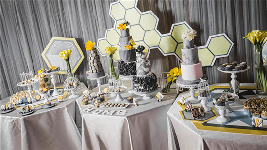 HOME·归属,家装设计与婚礼舞台搭建相结合是今年的新潮流,设计师选用了温馨而时尚的亮黄色与极具质感的银白二色相搭配。