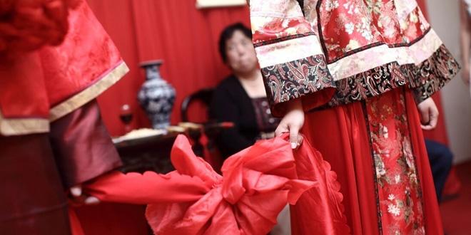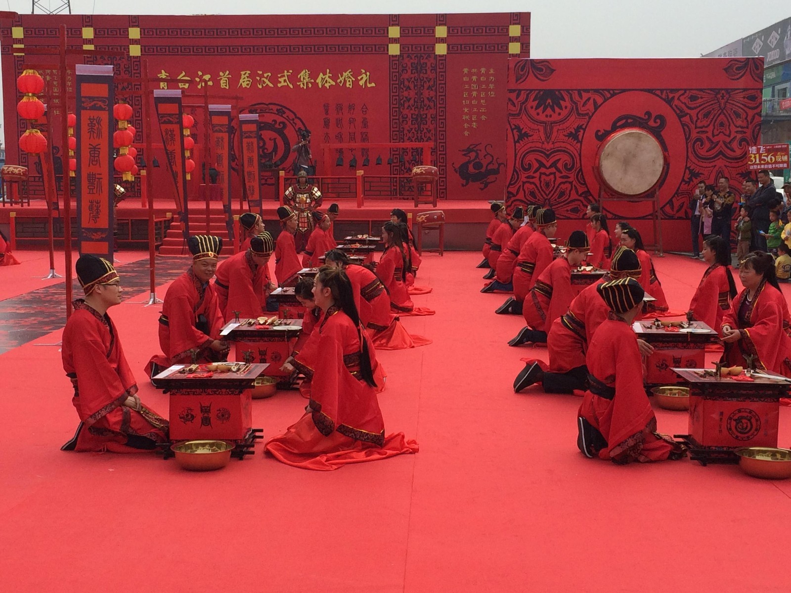 在喜气洋洋的音乐声中,梧桐凤凰,携手一起,多亏天地成全造美意,新人们怀着虔诚之心,行恭敬之礼,叩拜天地,叩谢父母,夫妻交拜,从此一心一意到白头。